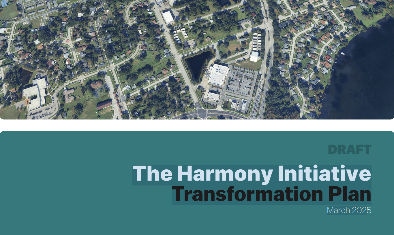 Discover the future of The Harmony Initiative. This draft transformation plan outlines a bold, community-driven vision to revitalize Orlando’s historic neighborhoods west of downtown. Rooted in resident voices and guided by decades of local heritage, it charts a path toward equitable growth through new housing, economic opportunity, and holistic neighborhood investment.